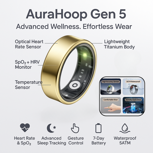 AuraHoop Gen 5 Smart Ring – Advanced Wellness, Motion Control & 128+ Sport Modes