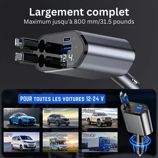 FlashCharge Pro 66 W – Chargeur de voiture rétractable 4 en 1