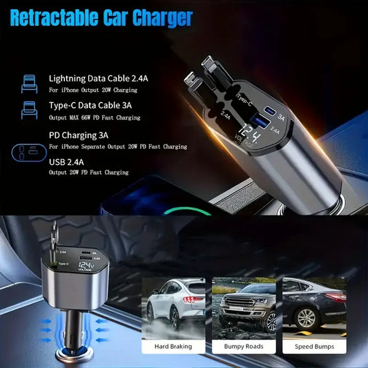 SnapCharge Pro 66W – 4-in-1 Retractable Car Charger