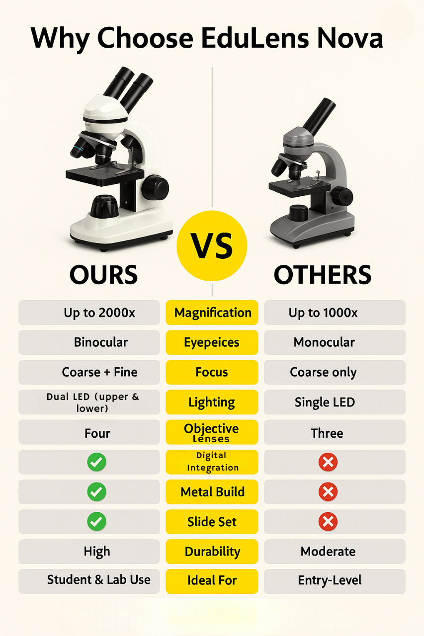 As a teacher, I wanted something reliable yet simple for my classroom, and EduLens NOVA fit perfectly. The build is sturdy, the optics are sharp, and my students had no trouble using it. Definitely a great choice for education.