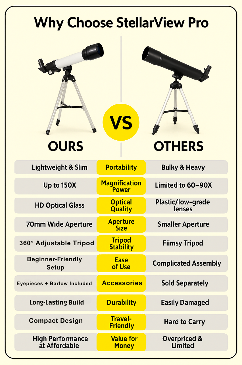 As a complete beginner, I was nervous about buying a telescope, but the StellarView Pro made it easy. The instructions were clear, and I was able to set it up on my own without any hassle. The 70mm lens gives such bright, clear images, and I’ve even managed to see Jupiter’s moons. It feels premium without the premium price tag.